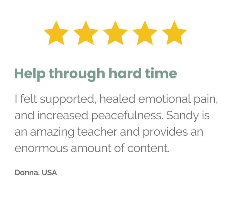 We combine Sandy’s Calmology techniques, practise powerful meditations and explore spiritual wisdom. If you want a calmer, healthier, more connected and meaningful life, then you’re going to love it! Inside you’ll access live webinars, online courses and retreats, expert interviews, meditations and more.